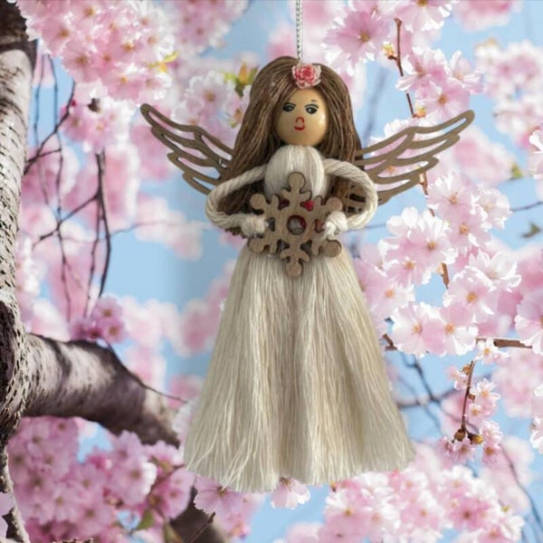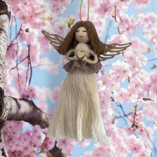 Tissé à la main avec des fils naturels, chaque ange en macramé incarne la tendresse, la protection et la magie des petits gestes. Avec ses ailes délicatement frangées, son halo doré et son cœur en bois, il apporte une touche céleste à votre décoration. À suspendre dans une chambre, près du sapin ou dans un espace de méditation, il veille avec discrétion et bienveillance.